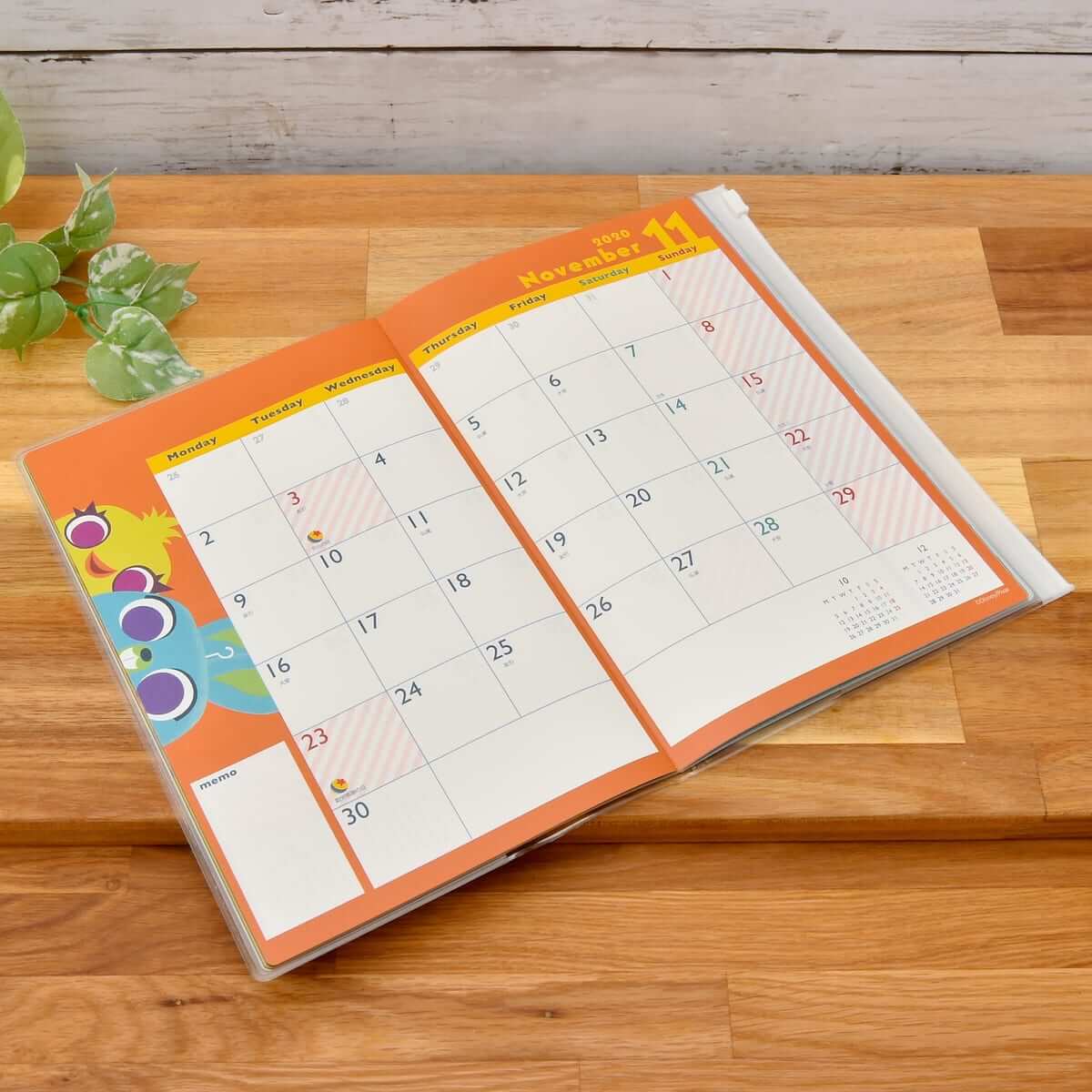 メインとなるマンスリーページは使いやすい月間ブロックタイプ。