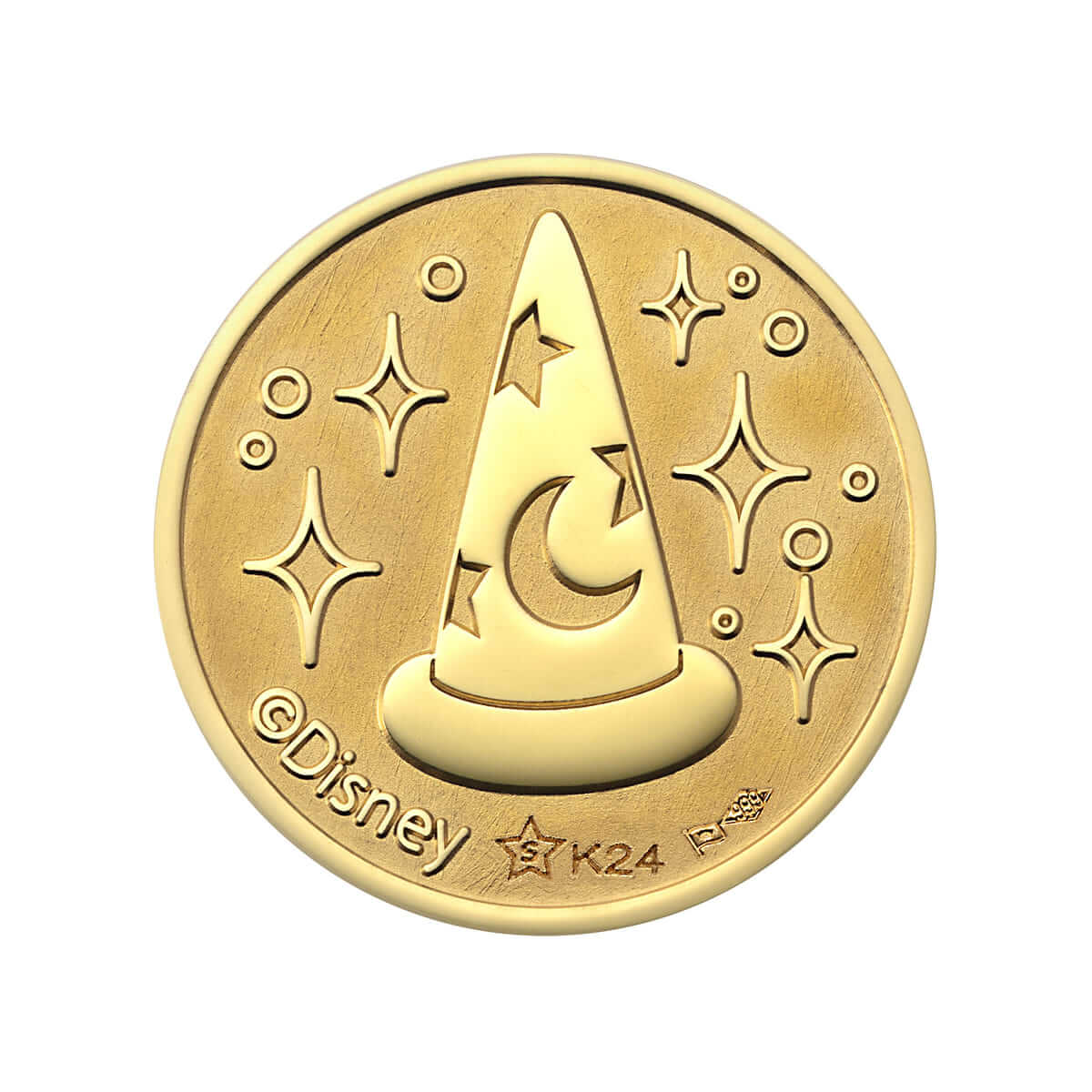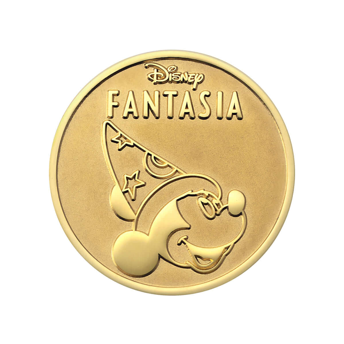 純金メダルの表面には、“FANTASIA”のロゴと、映画『ファンタジア』に登場する魔法の帽子をかぶった「ミッキーマウス」が刻印されています。