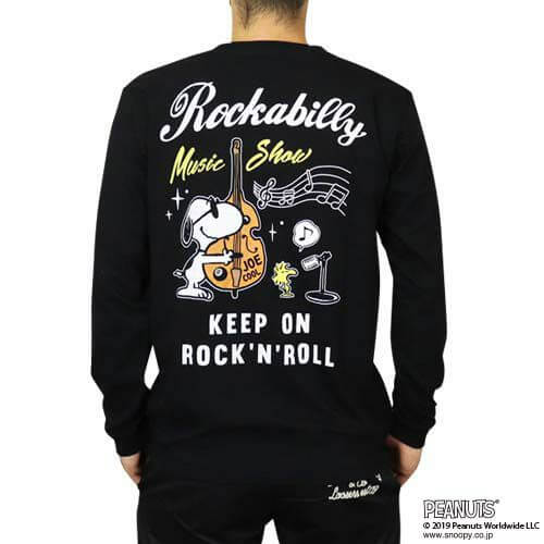 ロカビリー演奏を楽しむ「スヌーピー」と「ウッドストック」がバックにデザインされています。