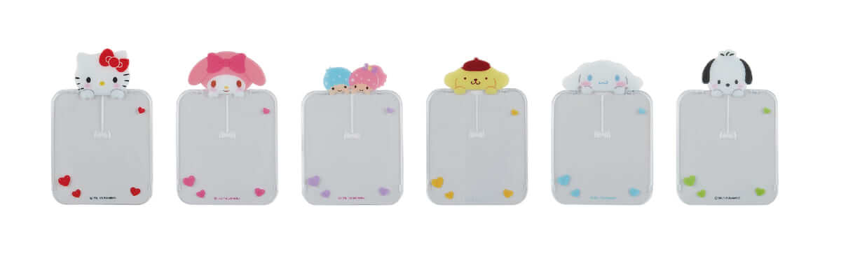キーホルダーや缶バッジ収納など、色々な使い方ができるファイルはハローキティ、マイメロディ、リトルツインスターズ、シナモロール、ポムポムプリン、ポチャッコの6キャラクターが揃いました。