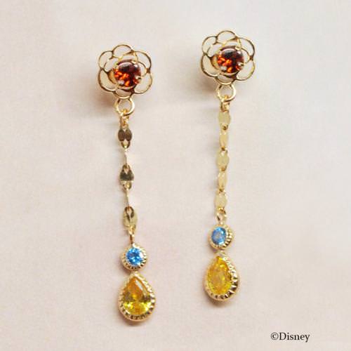 物語のキーアイテムである真っ赤な魔法のバラと、舞踏会で踊る「ベル」と「野獣」がイメージされたピアス。
