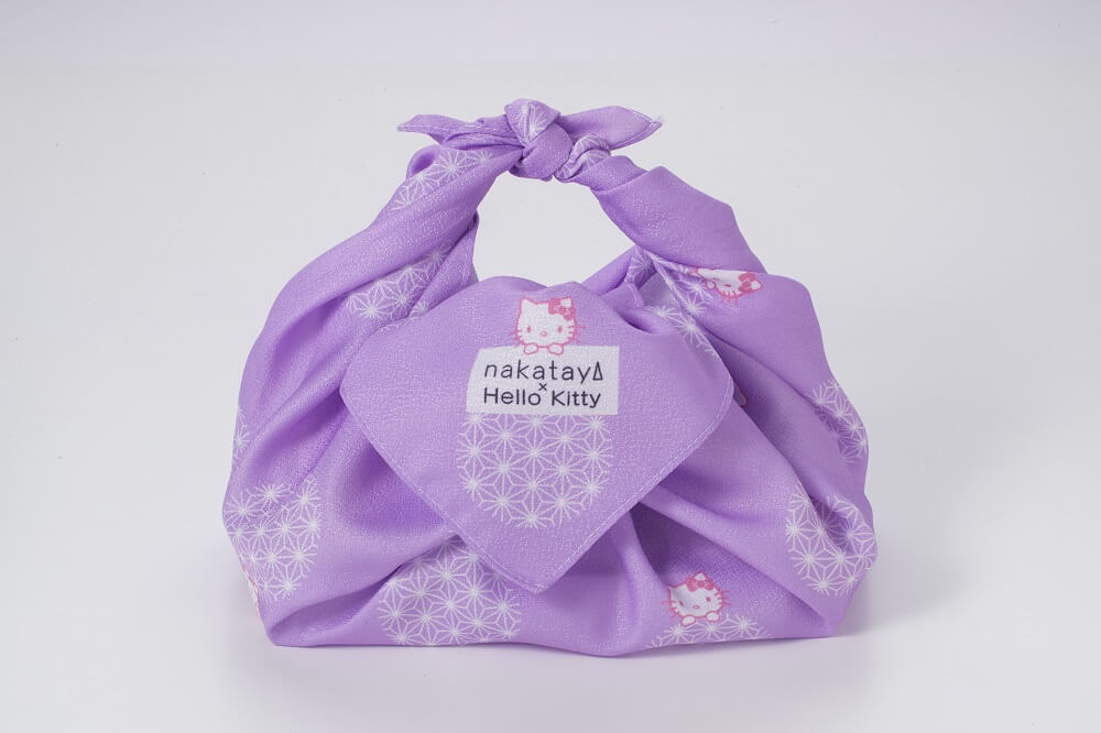 上品なバイオレットを背景に麻の葉文様とハローキティがデザインされた、和の雰囲気たっぷりのデザインがかわいい☆