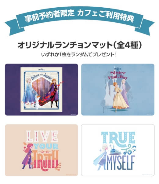事前予約(650 円(税抜)/1 名)をご利用いただき、メニューをご注文いただいた方に「ランチョンマット(全4種)」をランダムに 1 枚プレゼント。