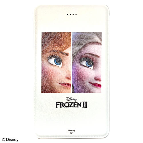 「アナ」と「エルサ」のお顔がデザインされたモバイルバッテリー。