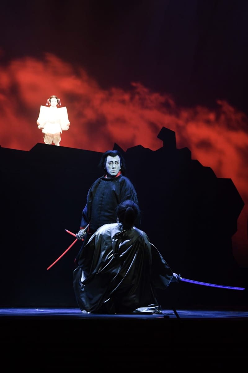 早替わりにより1人2役で演じる市川海老蔵さん。