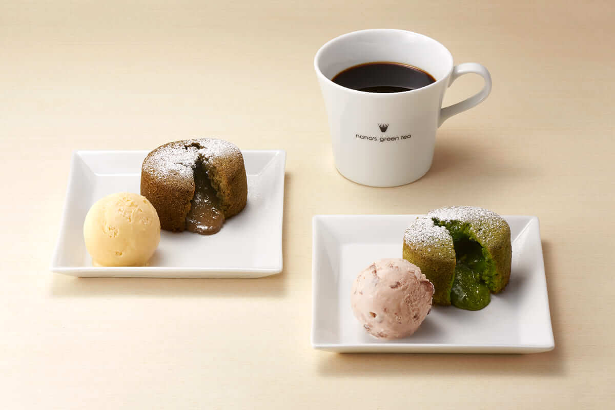 抹茶フォンダンショコラ 小倉アイスを添えて(写真右)/ほうじ茶フォンダンショコラ バニラアイスを添えて(写真左)
