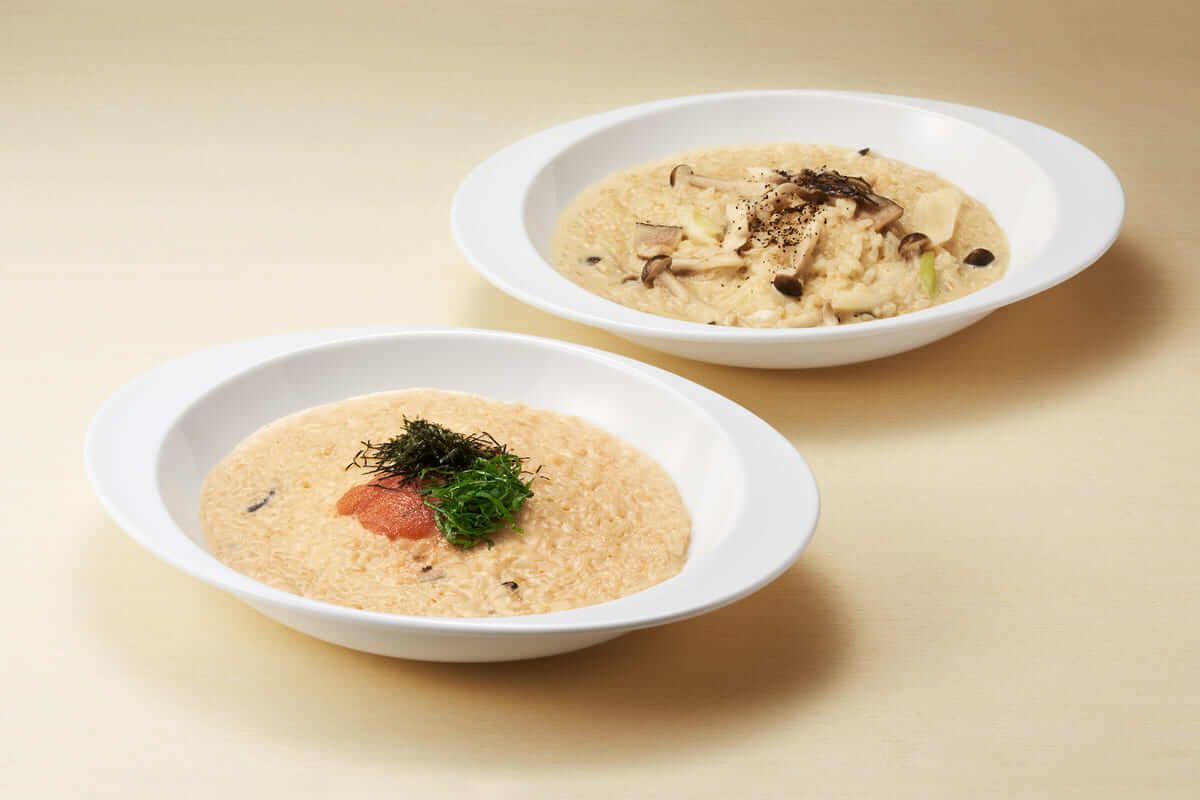 ナナズグリーンティーの中心食材である「お米」を使ったリゾットとして、「きのことチーズの豆乳味噌リゾット」と「明太子とチーズの豆乳味噌リゾット」が登場!