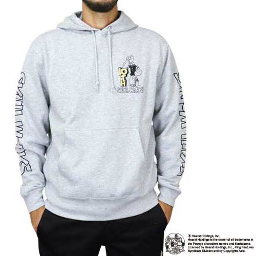 SKULL WORKSの10周年を記念して、そんな「ポパイ(TM)」がデザインされたロンTとパーカーが発売されました☆