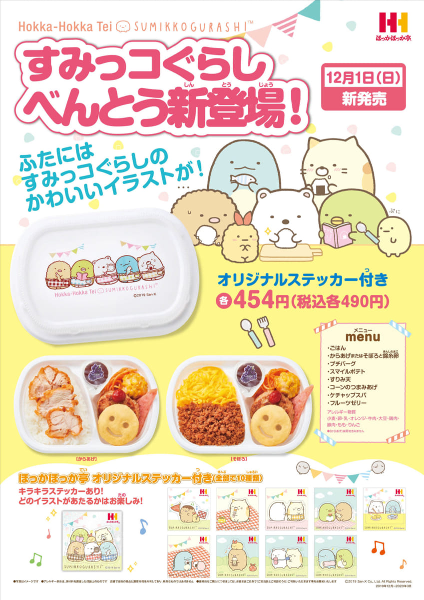 「すみっコぐらしべんとう」は、ほっかほっか亭にて、2019年12月1日(日)から期間限定で登場します。