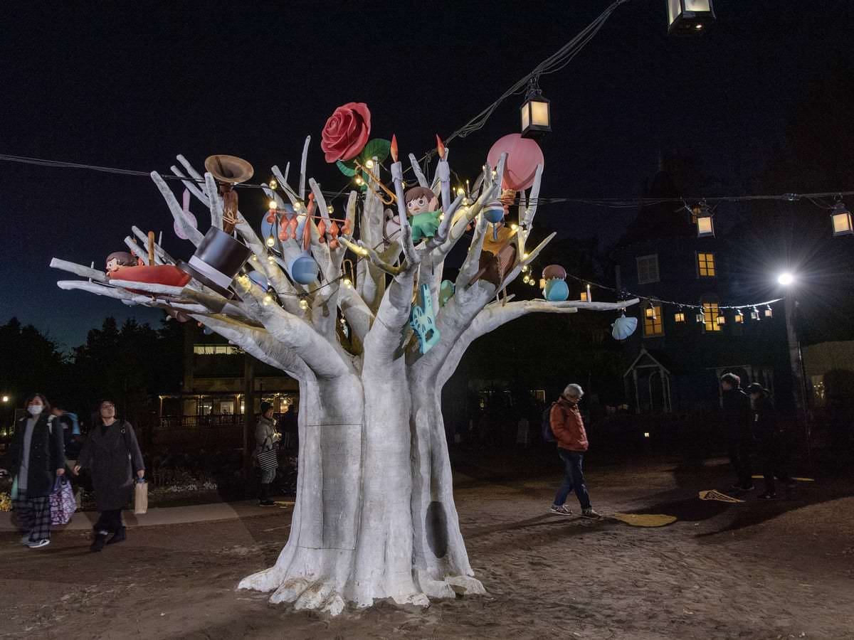 夜の「ムーミンバレーパーク」は、メインエリアとなる「ムーミン谷エリア」をメインにナイトイルミネーションを楽しめます。