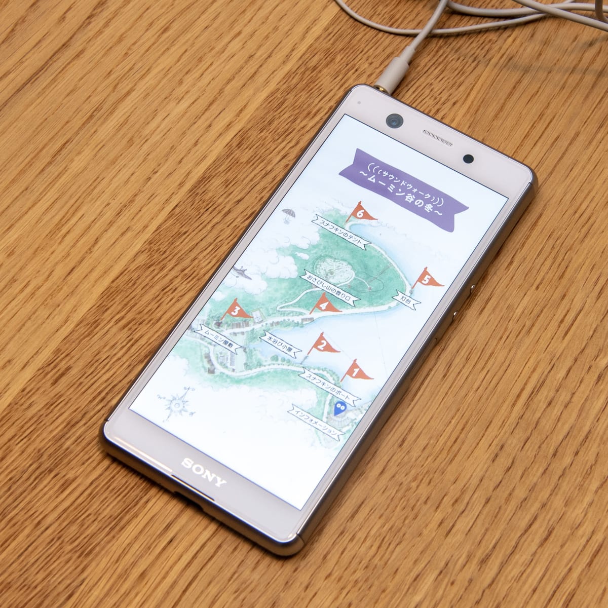 貸出しするソニーのXperiaスマートフォンとソニーのオープンイヤーステレオヘッドセット(STH40D)を装着してムーミンバレーパーク内を歩くことで、Sound AR体験を楽しめます。