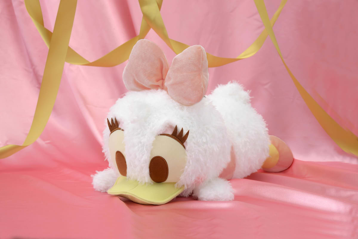 ホワイト×ゴールドカラーの「デイジーダック」が大きなぬいぐるみで登場。