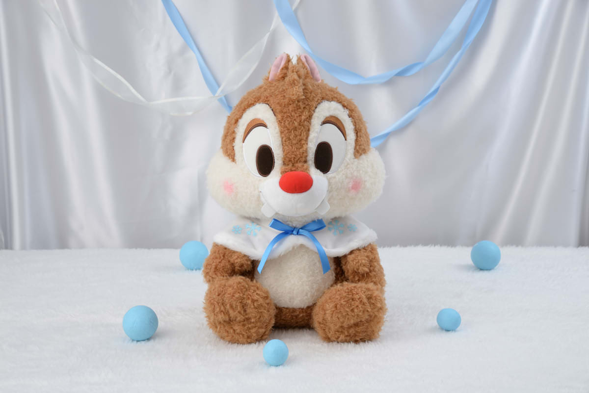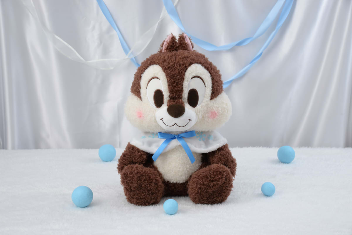 白いケープを着た「チップ」がデザインされた「チップ 赤いほっぺ メガジャンボホワイトケープぬいぐるみ」