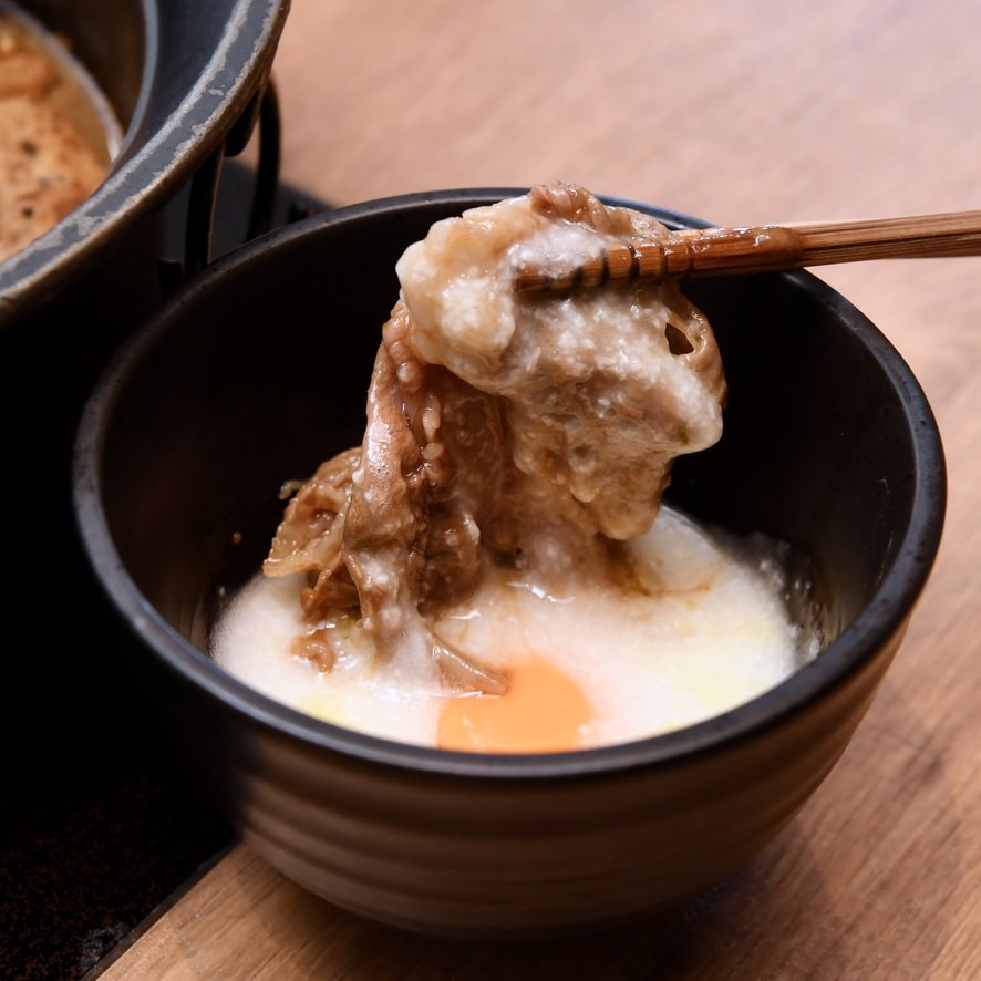 味噌すきでしゃぶしゃぶした肉をのせて食べる卵かけごはん「味噌すきTKG」