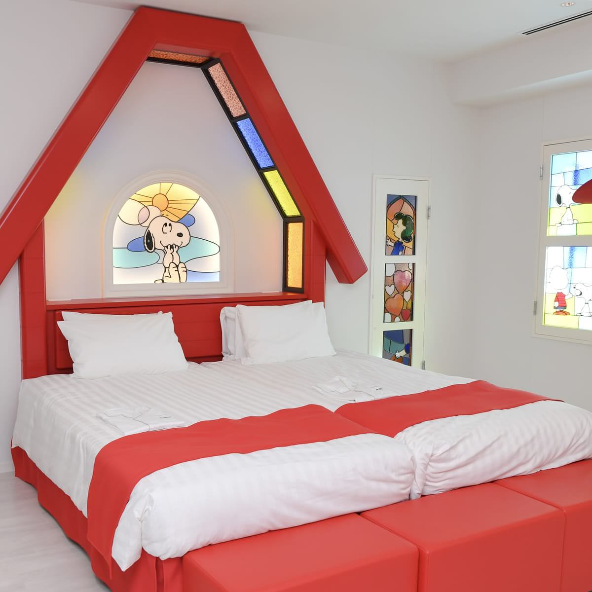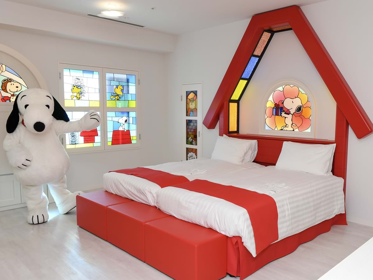 「ピーナッツ」や「ジュラシック・ワールド」「セサミストリート」など、パークの人気者たちとのコラボレーションルームが登場。