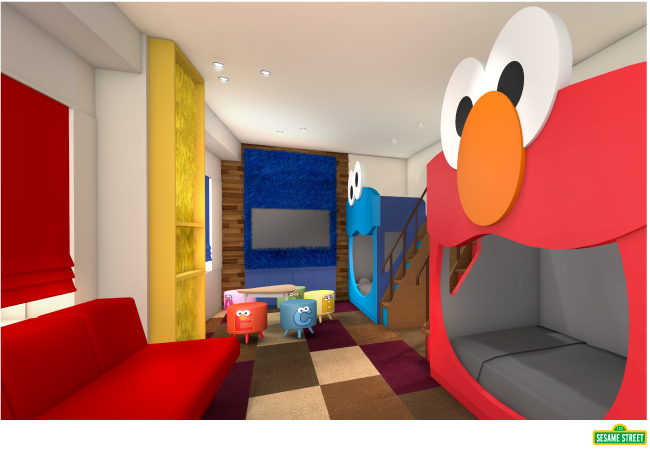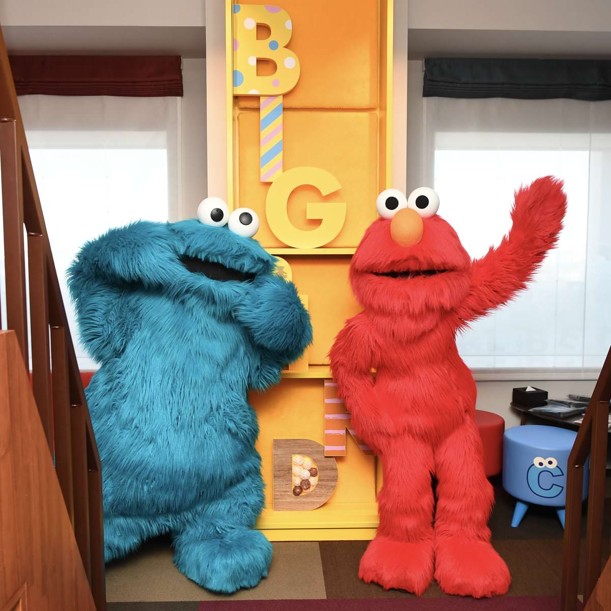 超ビッグフェイスの「エルモ&クッキーモンスター」がお出迎えしてくれる「セサミストリート・ビッグフェイス・ルーム」