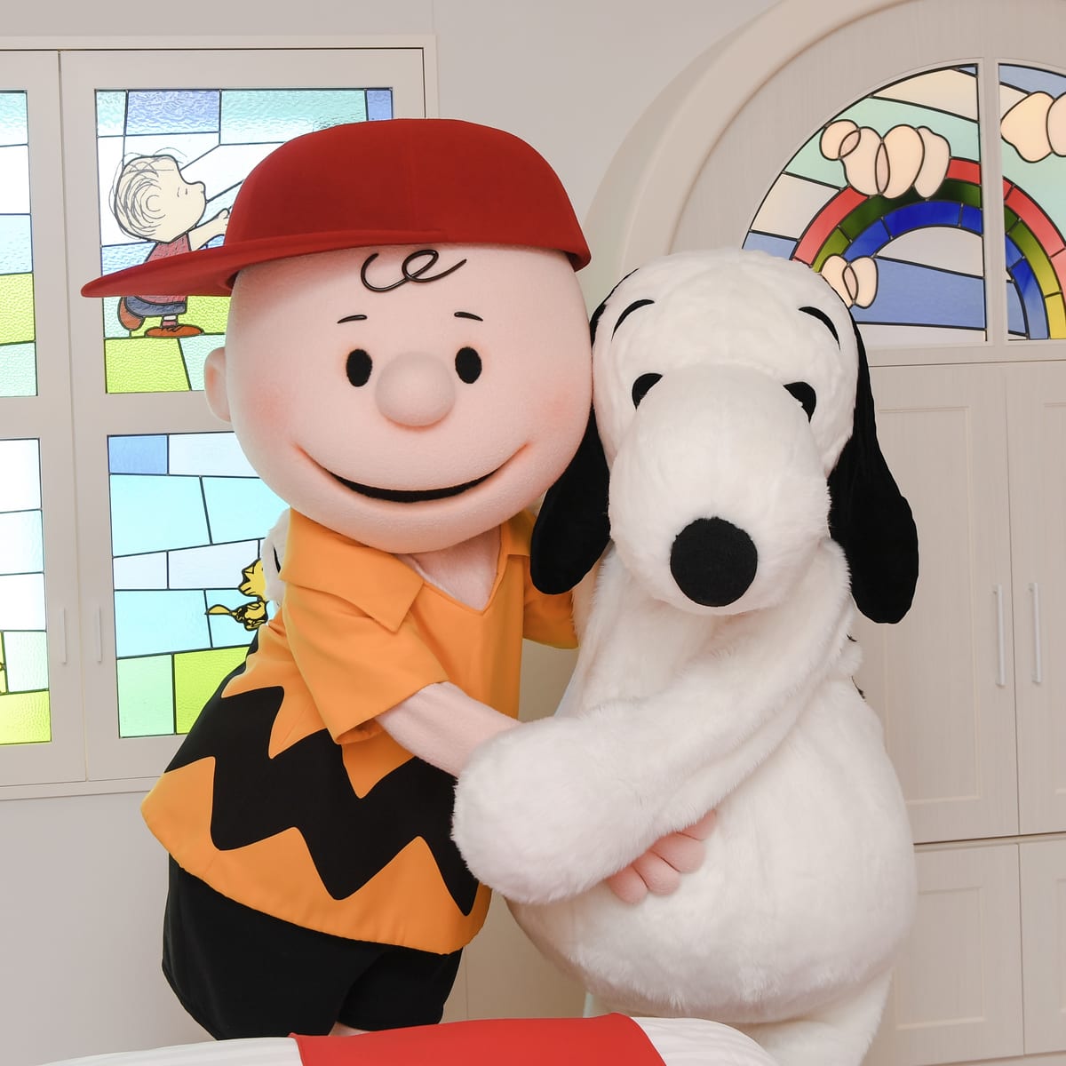 パークの人気者、スヌーピーとチャーリー・ブラウンが、スヌーピー・ハウス・ルームの注目ポイントを教えてくれました☆