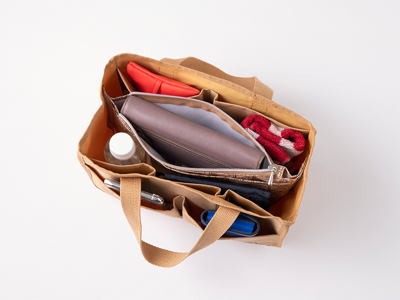 バッグインバッグに、リビングの小物の整理に、コスメや美容グッズの整理にと大活躍の便利なバッグです。