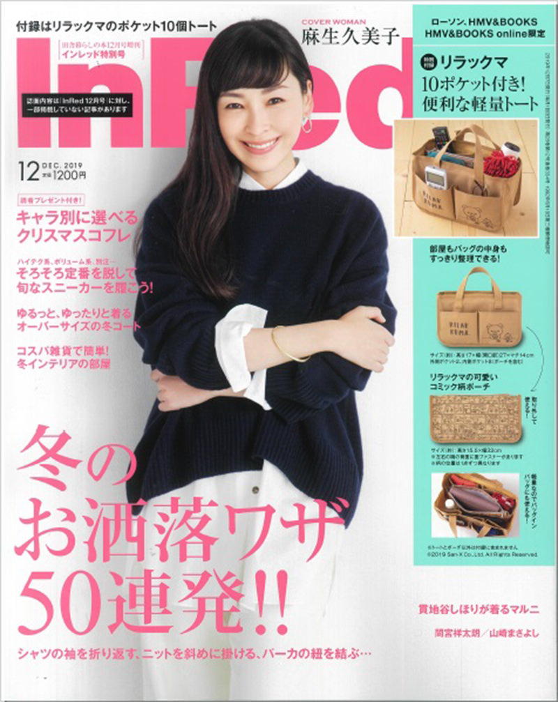 麻生久美子さんが表紙の「InRed12月号 特別号」に「リラックマ」の「10ポケット付きトート」が付いてきます!