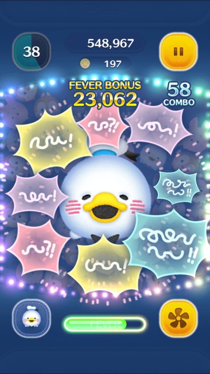 ほっこりさせてくれる仕草が魅力の「ゆるっとドナルド」は、数ヶ所でまとまってツムを消します。