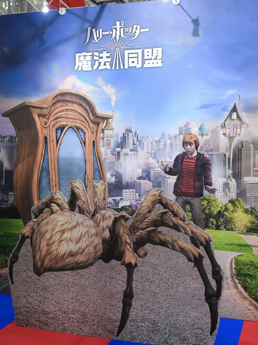 『ハリー・ポッター:魔法同盟』のフォトブースの前で記念撮影☆