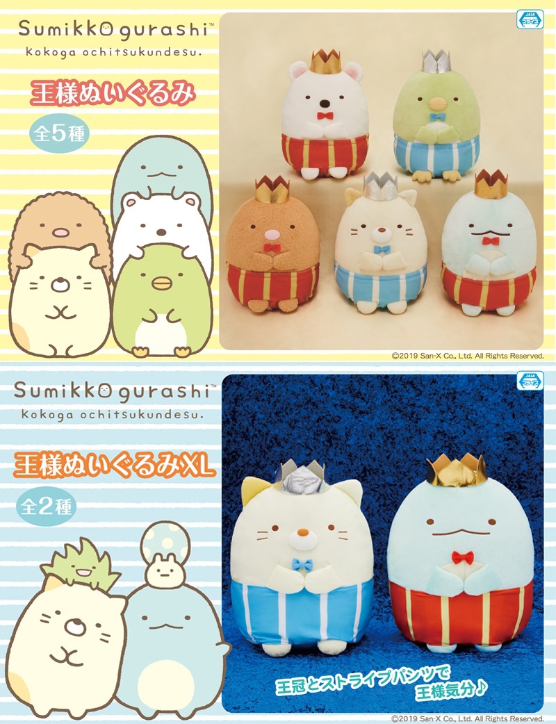 種類数:【すみっコぐらし 王様ぬいぐるみ】全5種/【すみっコぐらし 王様ぬいぐるみXL】全2種