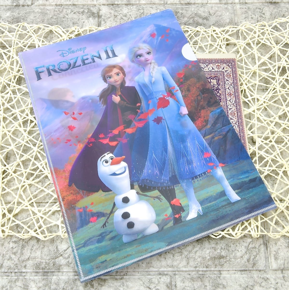 霧が立ち込める大地に「アナ」と「エルサ」がレイアウトされた、B5サイズの「下敷き」