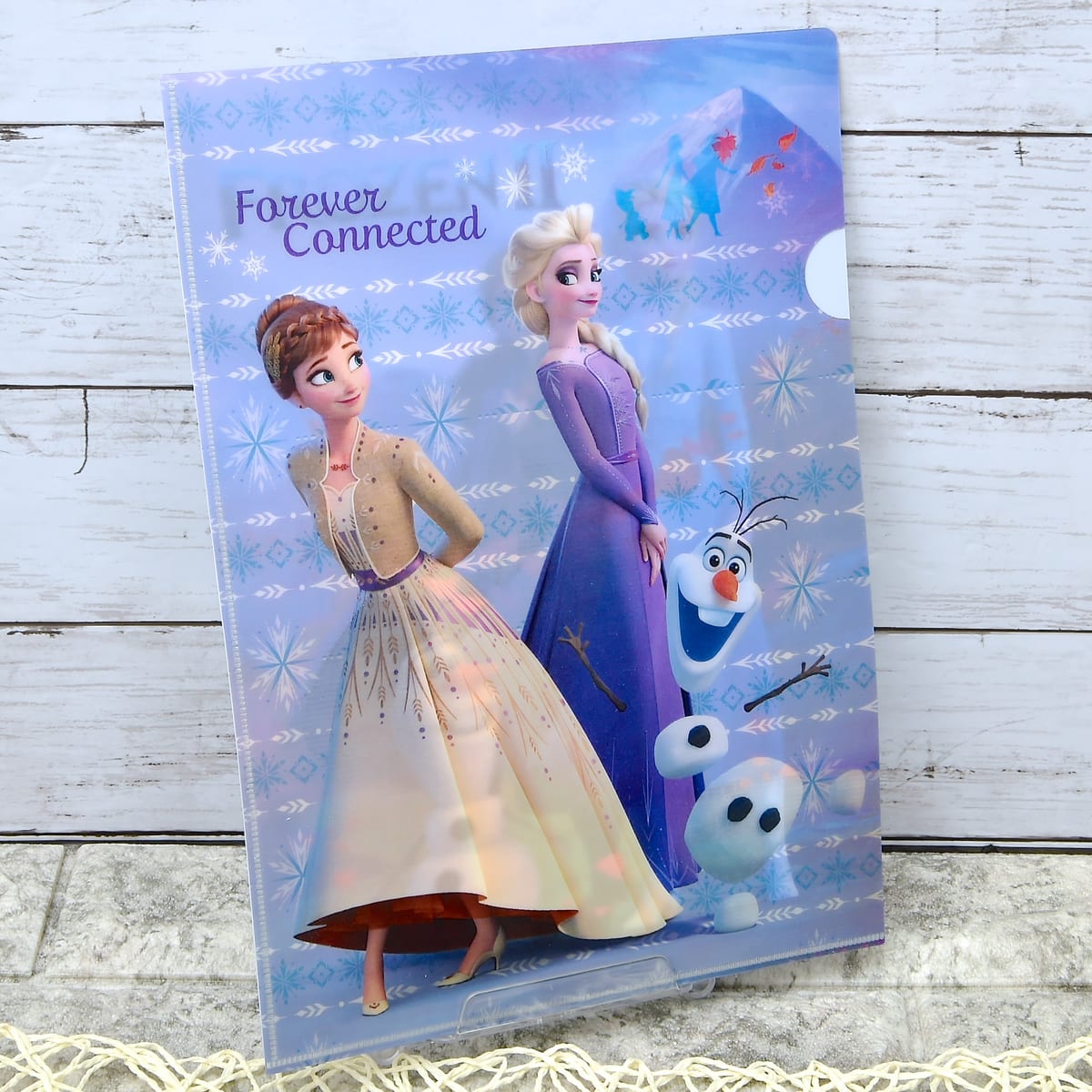 幻想的なアートが採用されたクリアファイルの内側には『アナと雪の女王2』の舞台と共に「アナ」と「エルサ」のサイドシルエットが。