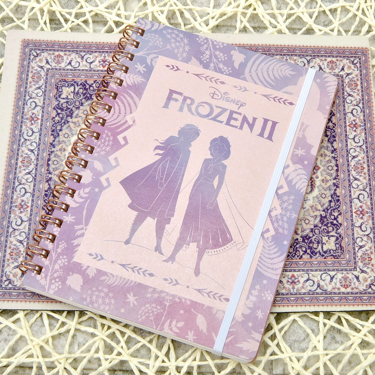 「アナ」と「エルサ」を象徴するモチーフやアイコンが採用された「ゴムバンド付きリングノート」