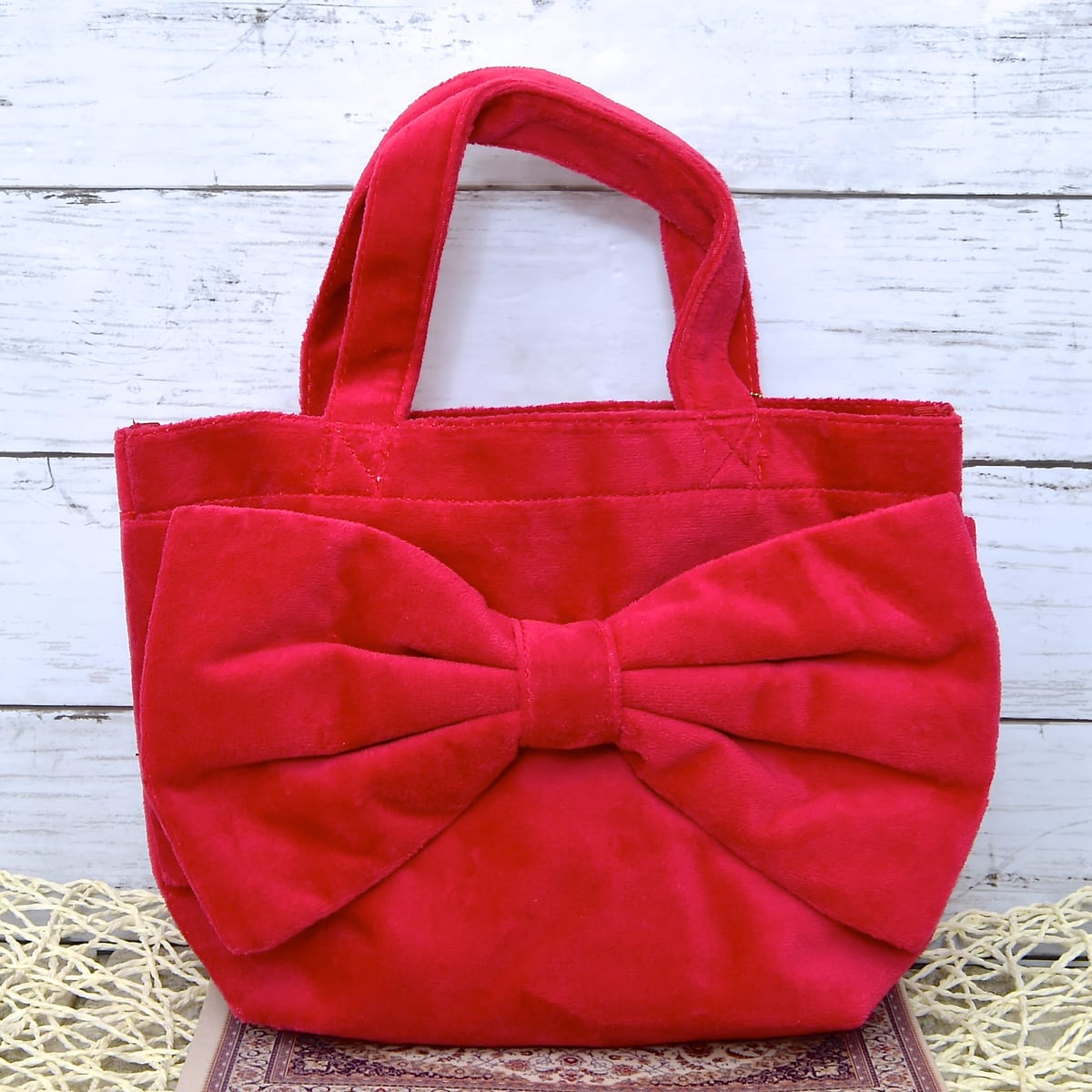 オモテ面の絵柄が金箔押し&刺繍仕様になった、ベロア素材の「ミニトートバッグ」