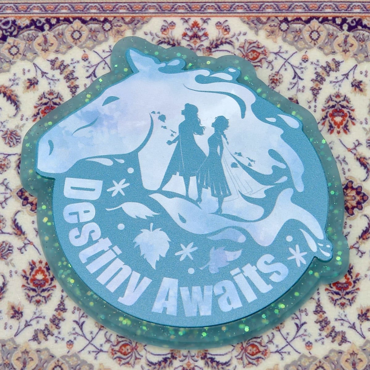 『アナと雪の女王2』に新たに登場する“謎の馬”と共に「アナ」と「エルサ」のサイドシルエットがデザインされています。