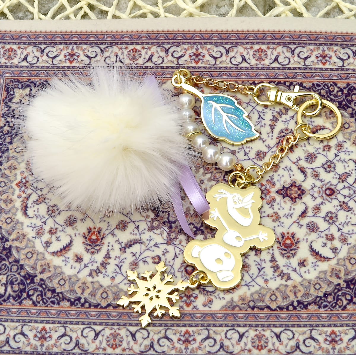 チャームには「オラフ」と物語を象徴する雪の結晶型チャーム付き。