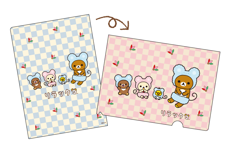 リラックマたちがネズミ姿で集合した、かわいいイラストのクリアファイル。