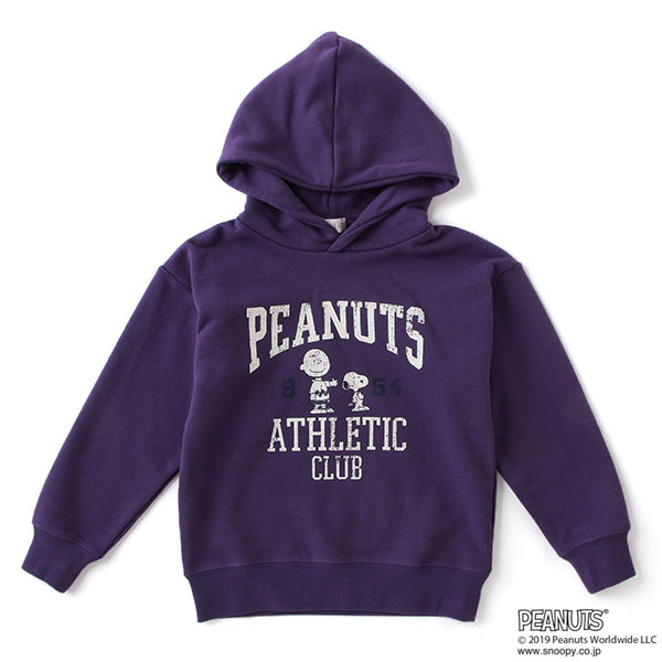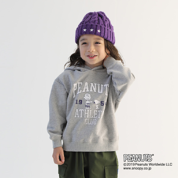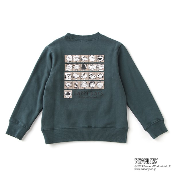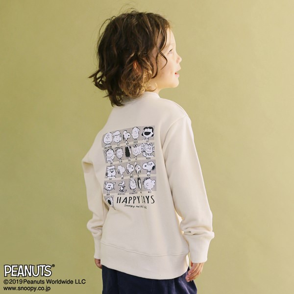 フロントはシンプルなロゴ、バックは「スヌーピー」のお友達やきょうだいがデザインされた『PEANUTS』コラボのトレーナー。