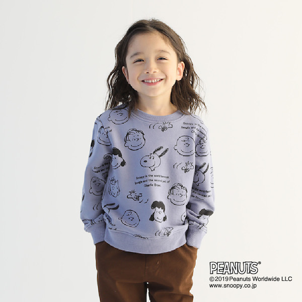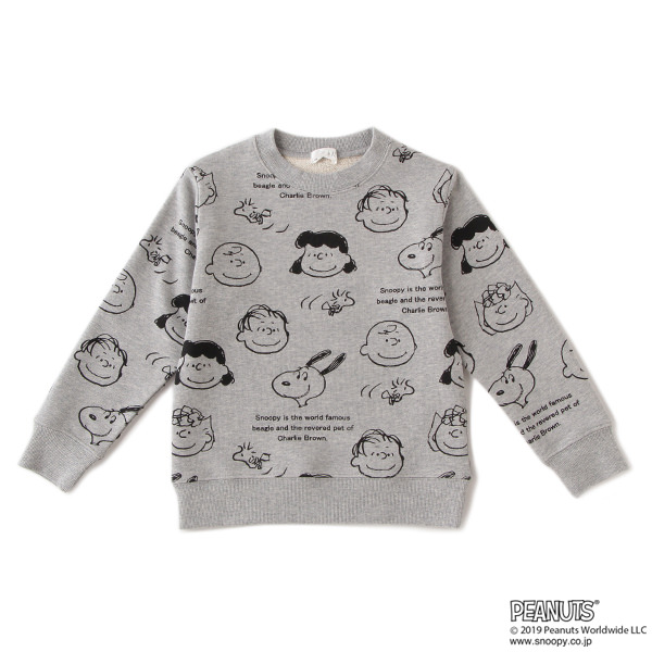 「スヌーピー&フレンズ」のフェイスがプリントされた『PEANUTS』コラボの裏毛トレーナー。