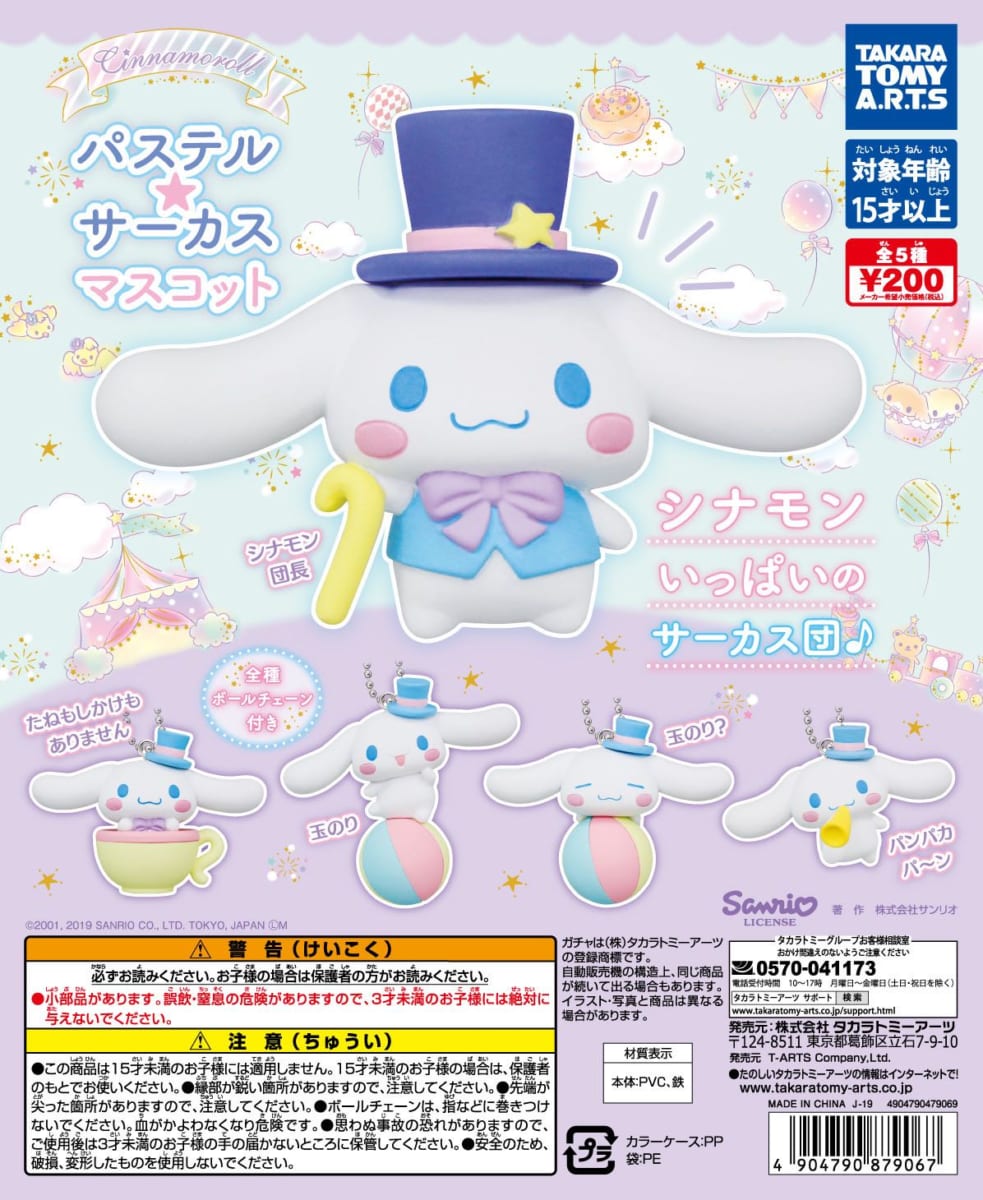 パステルカラーが愛らしい「シナモロール パステル★サーカスマスコット」が、2019年11月中旬よりカプセルトイ販売機で発売されます☆