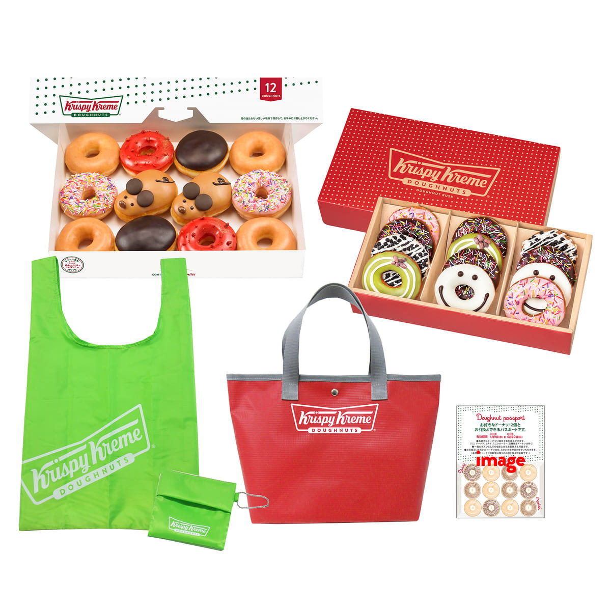 そして今回初登場のオリジナルエコバッグや、「福袋アソート ダズン(12個)」など5点が入った豪華な「クリスピーバッグ」