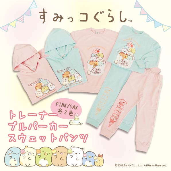 すみっコぐらしのキッズアパレル、パーカー・トレーナー・スウェットパンツ・フリース・中綿ジャケット・パッカブルジャケットが、sports DEPO(スポーツデポ)とsportsAlpen(スポーツアルペン)で販売中です。