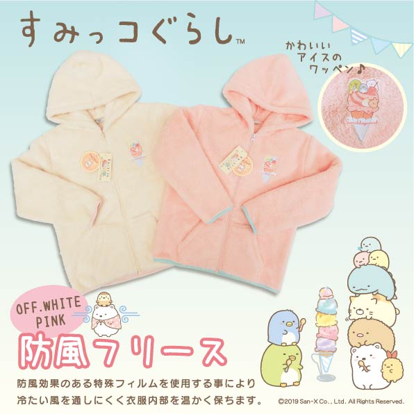 すみっコたちがアイスに載ったワッペンがとってもかわいい、あったかフリース。