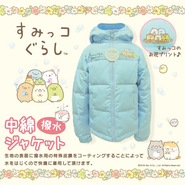 胸元のすみっコのお花プリントがポイントの中綿ジャケット。
