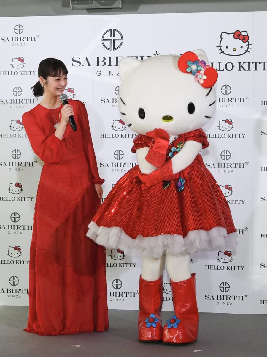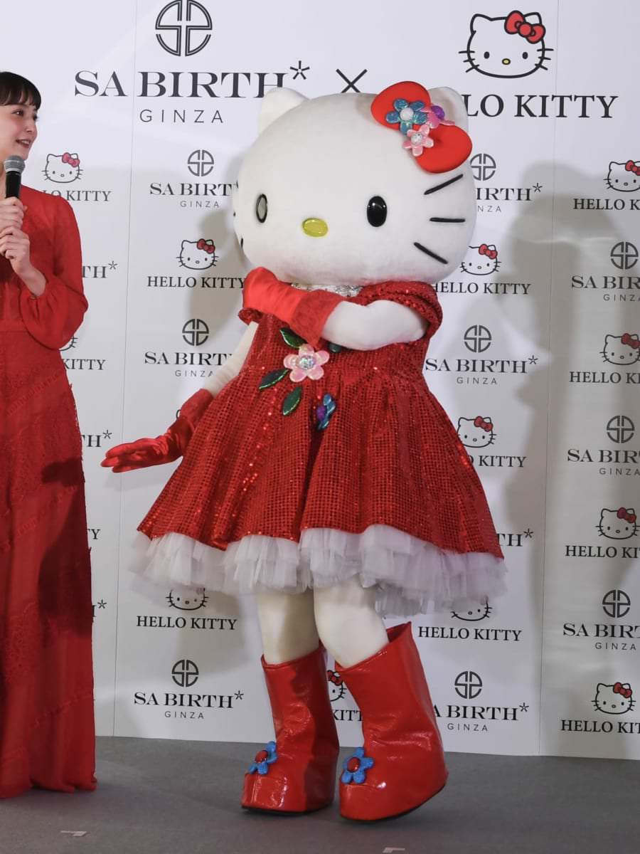 発表会には、ハローキティをイメージした赤いドレスを着た佐々木希さんと
