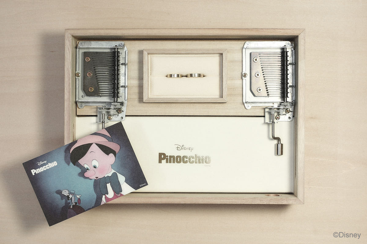 ディズニーアニメーション『ピノキオ』の「星に願いを」を奏でる業界初“ツインオルゴール”がセットになったペアリングの紹介でした☆