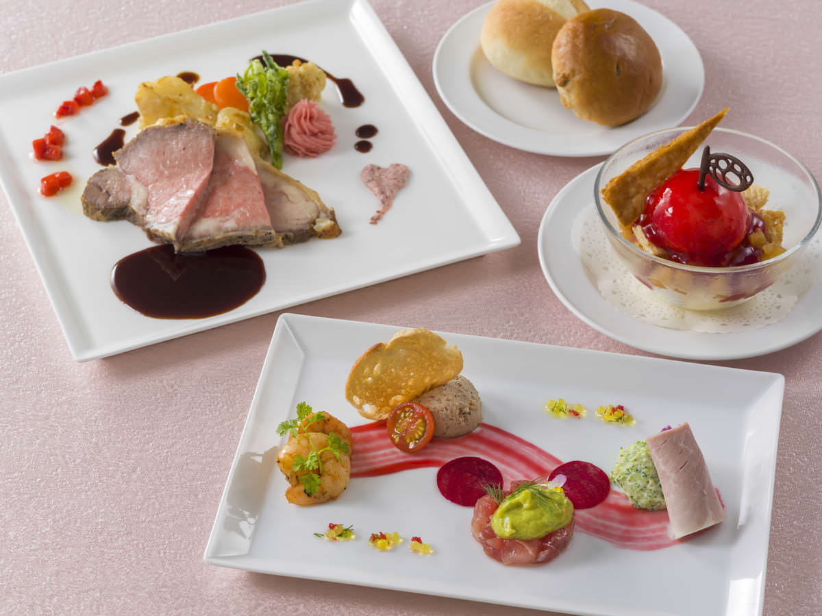 メインのローストビーフのお皿には、ストロベリーソースでハート形があしらわれているのもポイントです☆