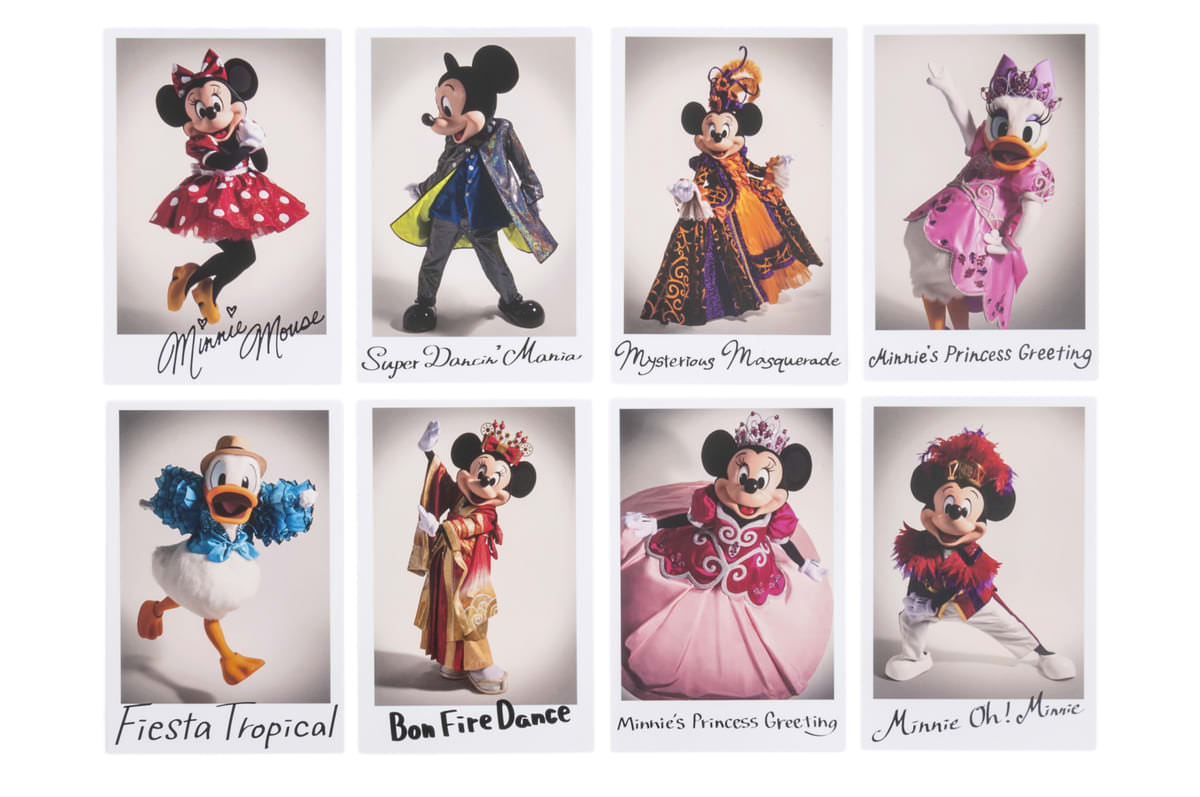 これまでに着用されてきたミニーマウス、ミッキーマウスたちのポストカードが
