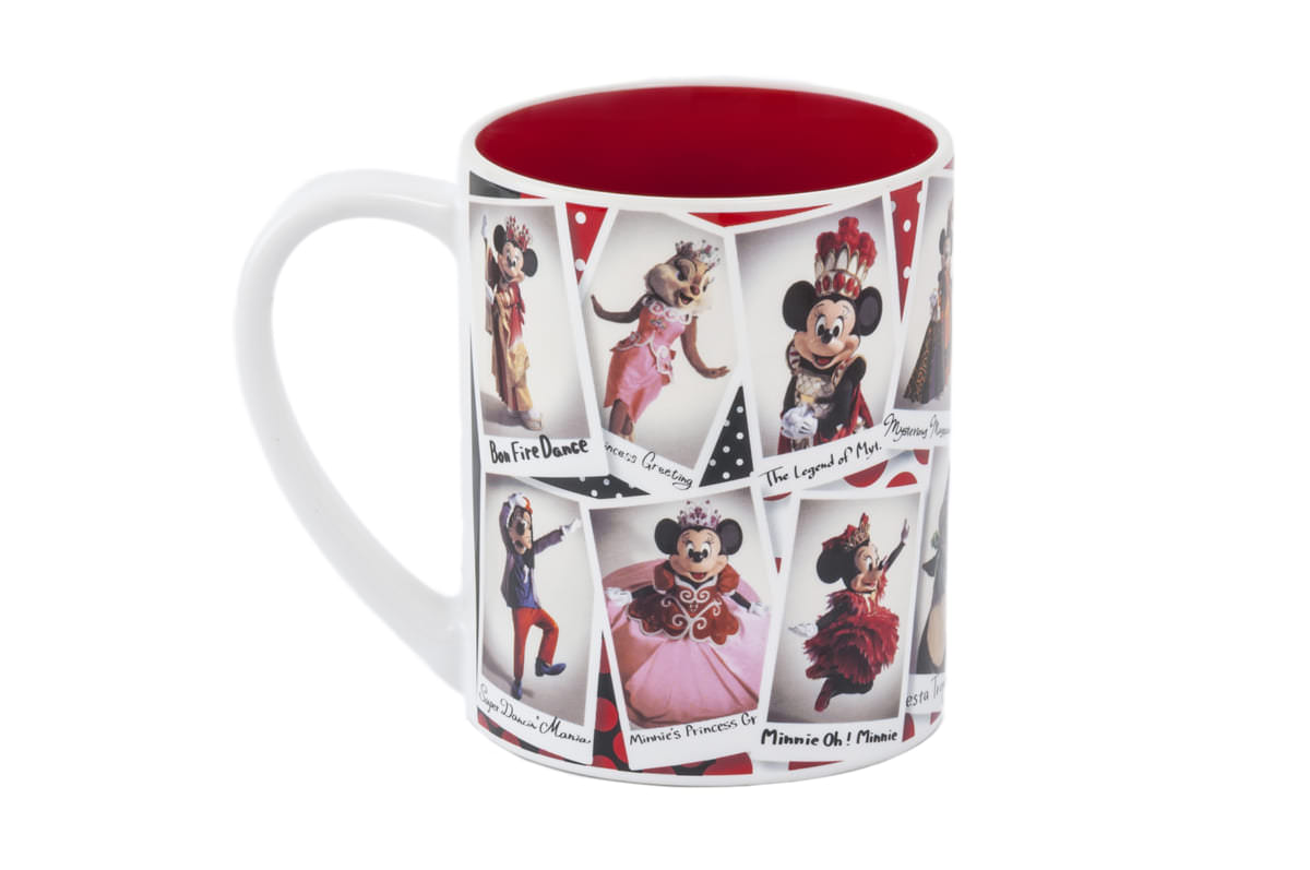 歴代コスチューム写真が全周にデザインされたマグカップ。