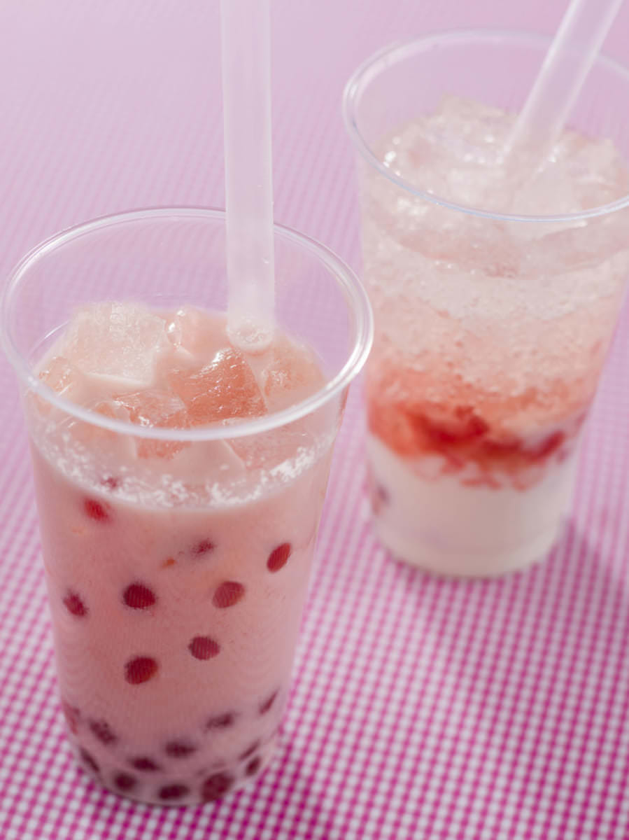 ストロベリーとヨーグルトの甘酸っぱさと、スパークリングな爽やかさが一体となった人気のタピオカドリンク。