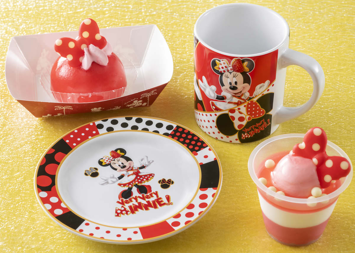 ミニーマウスを象徴する赤・白・黒のドット柄を大胆に配置したスーベニアグッズ付きメニューが登場!