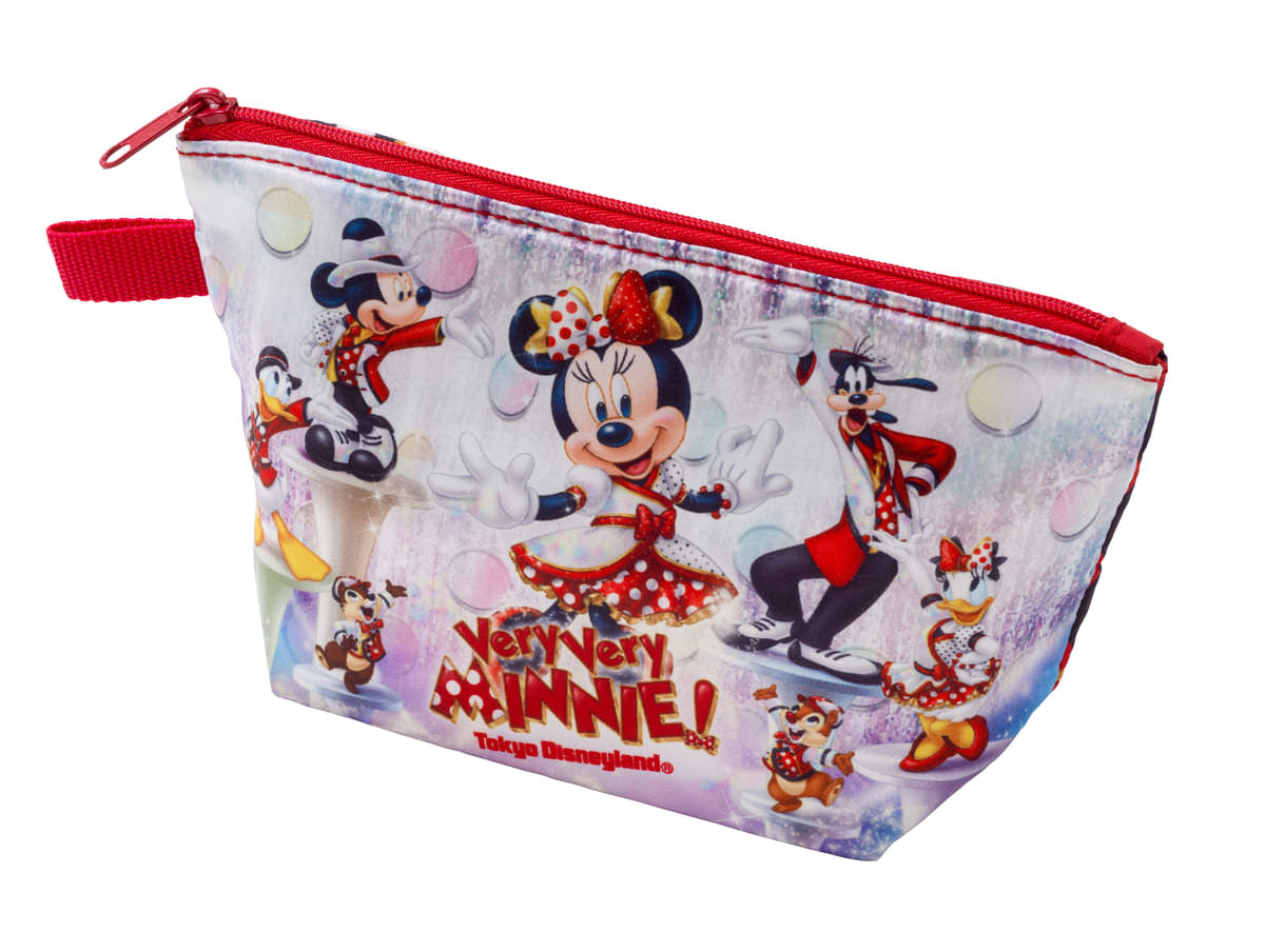 スーベニアポーチには、ミニーマウスを中心にキャラクターたちがデザインされています。