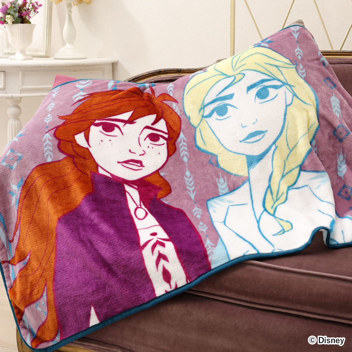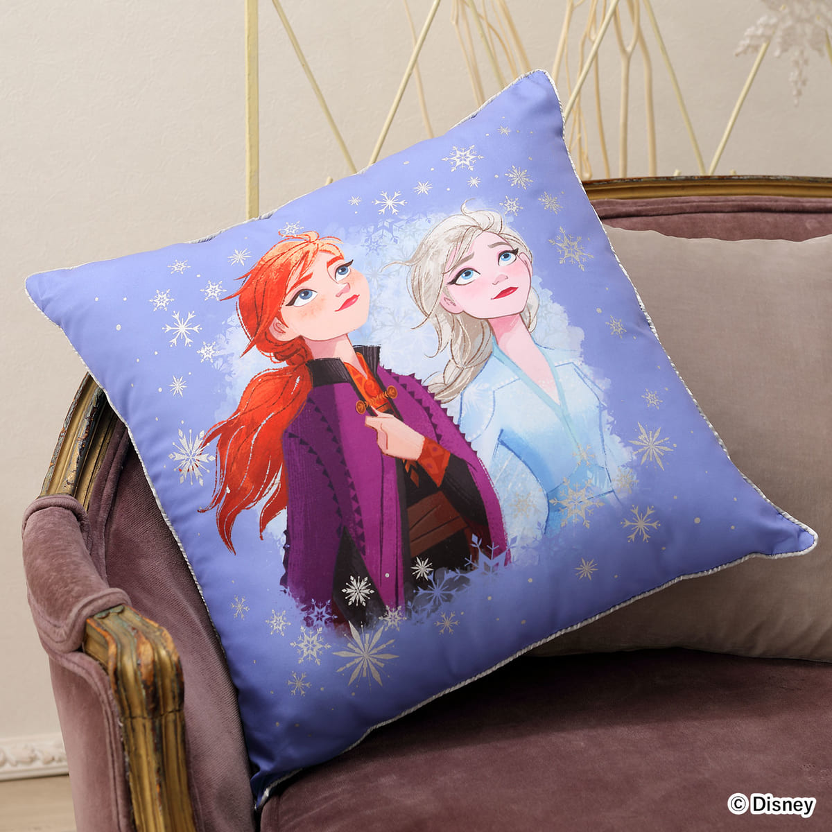 「アナ」と「エルサ」がプリントされた、存在感抜群の大きいクッションです。