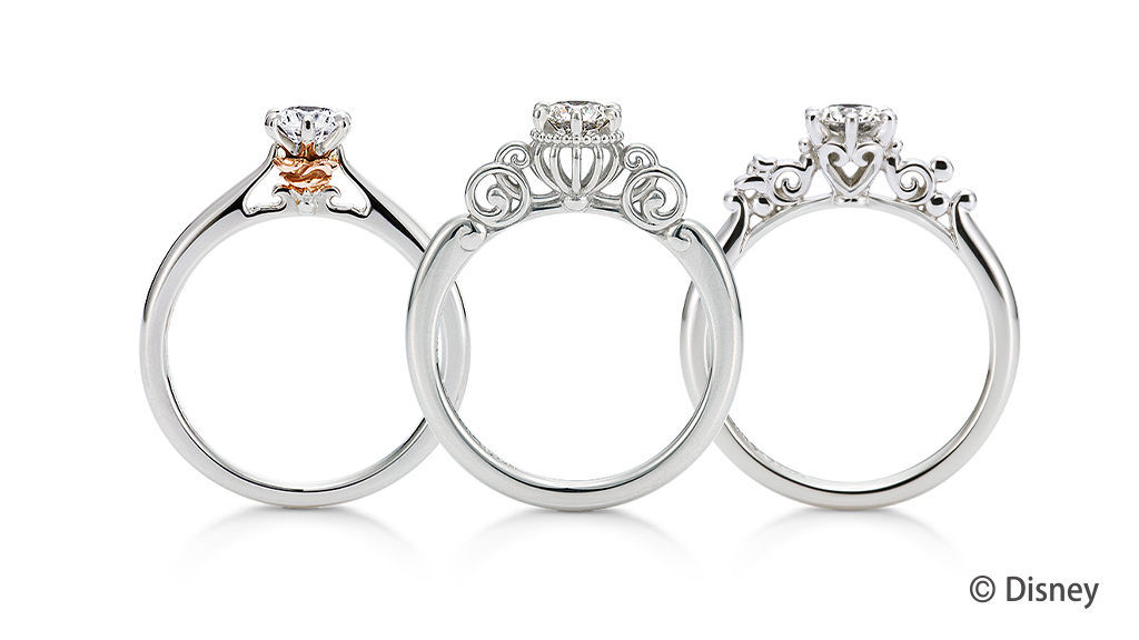 このほど「プロポーズリングサービス」の対象商品に、ディズニーデザインの婚約指輪3種類が追加されました☆